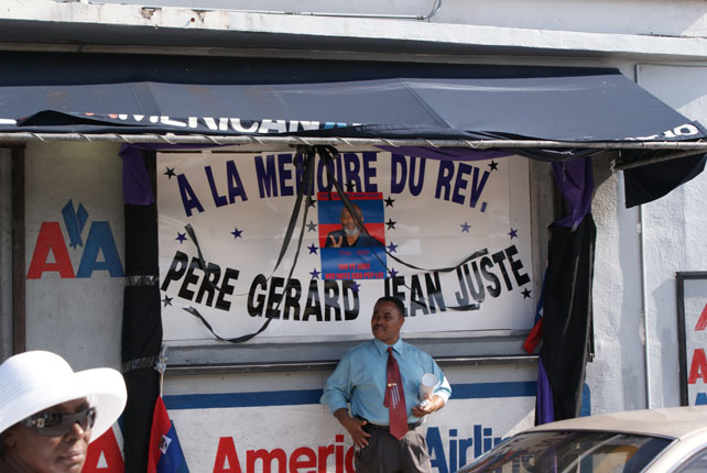 hearse that carried Father Jean Juste's body.