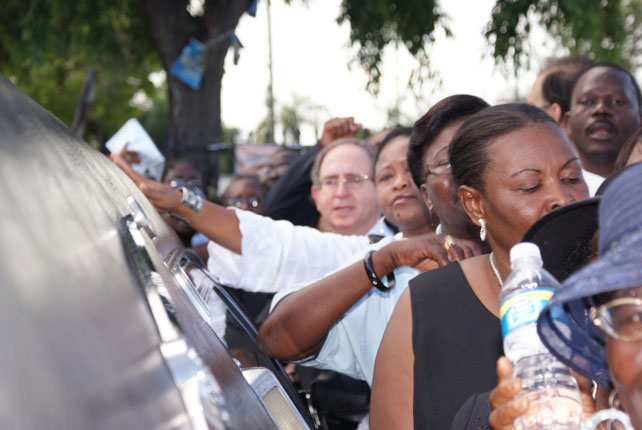 A final farewell at Veye Yo June 6, 2009 memorial procession's gathering at Veye Yo, Father Jean Juste's grassroots organization on 54th Street. *