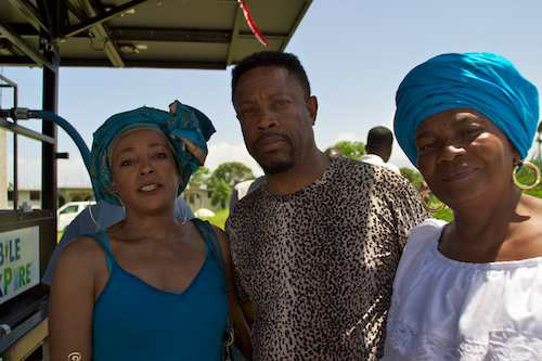 Ezili Dantò with owner of property where the water unit