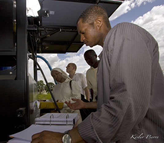 Brother Byron Muhammad, sets up the Mobile Max Pure system;