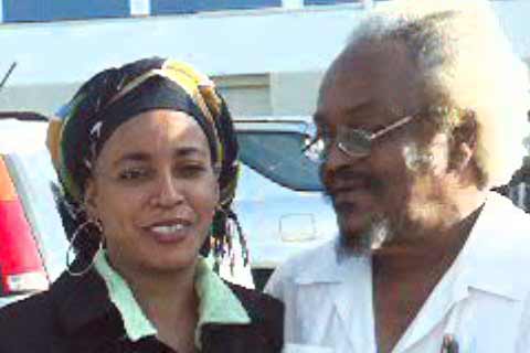 Èzili Dantò of FreeHaiti/HLLN with famous Jamaican journalist, John Maxwell, after press conference at Pegasus Hotel