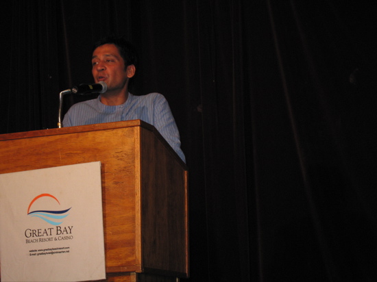 Dr. Tabish Khair, author, scholar and literary critic is guest speaker to launch Drisana Deborah Jack's new book "skin" St. Martin Book fair closing ceremony, June 3, 2006